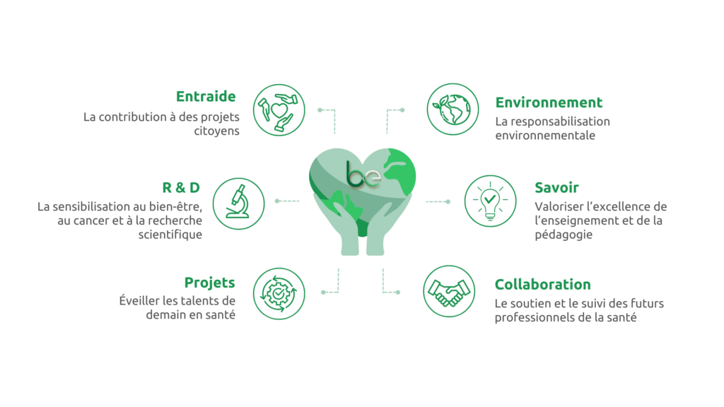 Notre mission est double. D’une part, nous cherchons à garantir que les professionnels de la santé opèrent non seulement avec une conscience éthique mais aussi avec excellence. D’autre part, nous voulons que B-Ethics soit un acteur clé de la solidarité et de l’entraide auprès des générations futures des sciences de la santé.